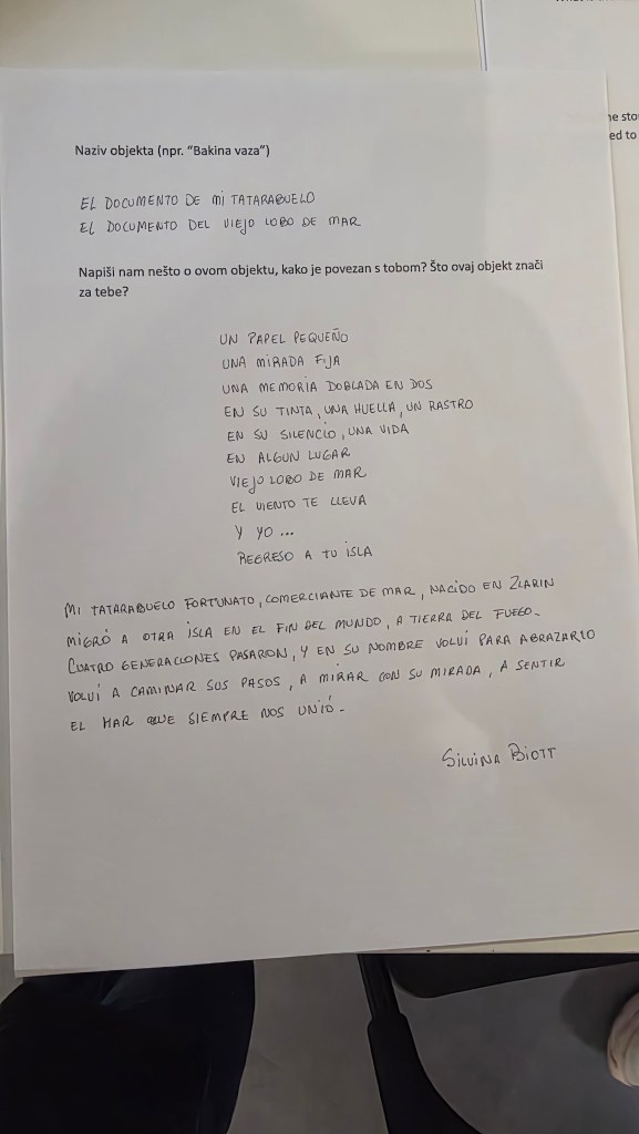 En esa sala, entre textos escritos en croata, en inglés y en distintas voces del mundo, dejé también mis palabras. Y sentí algo difícil de explicar. Que mi historia, esa que nace entre dos tierras, era comprendida sin necesidad de traducción.